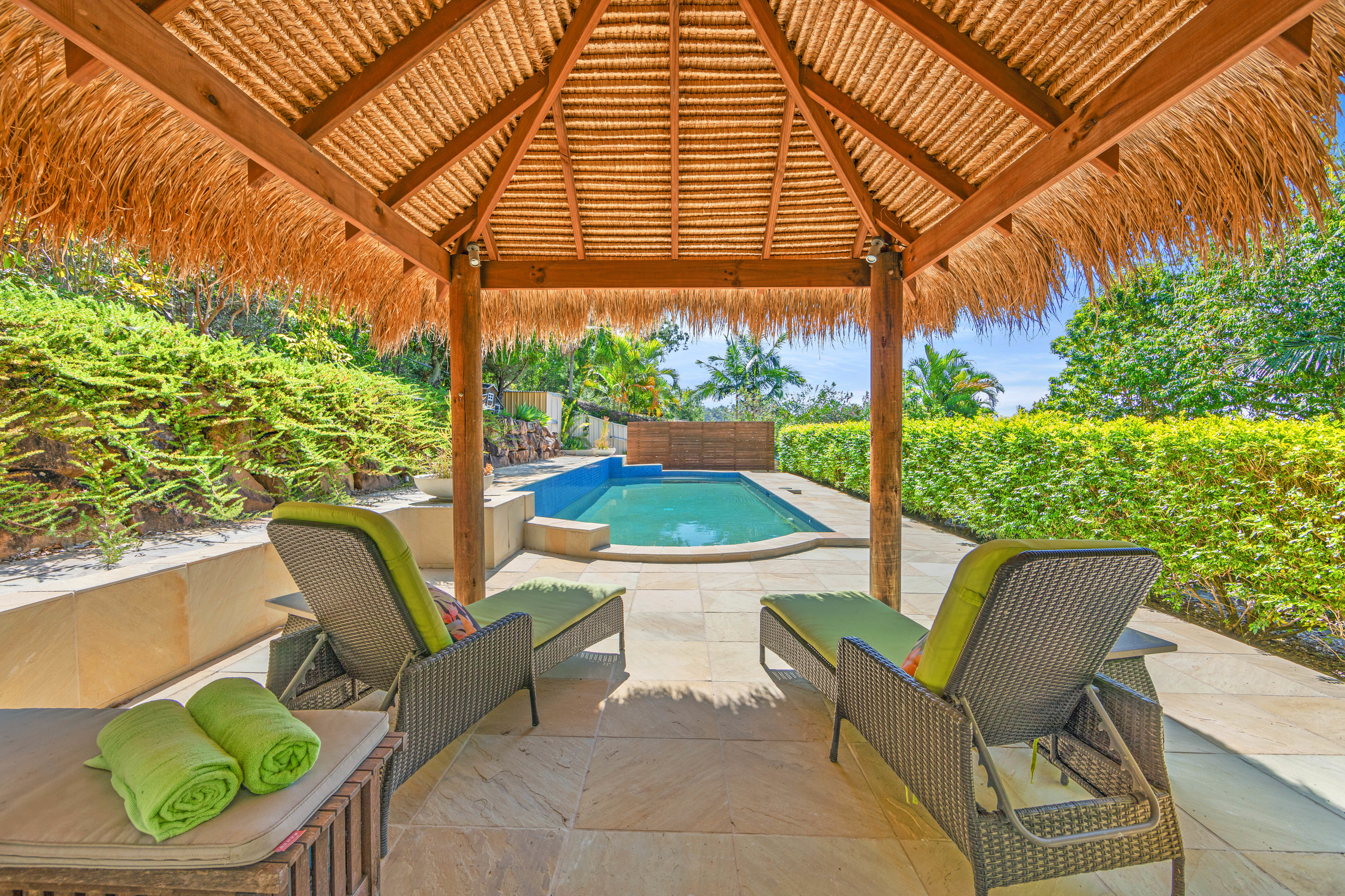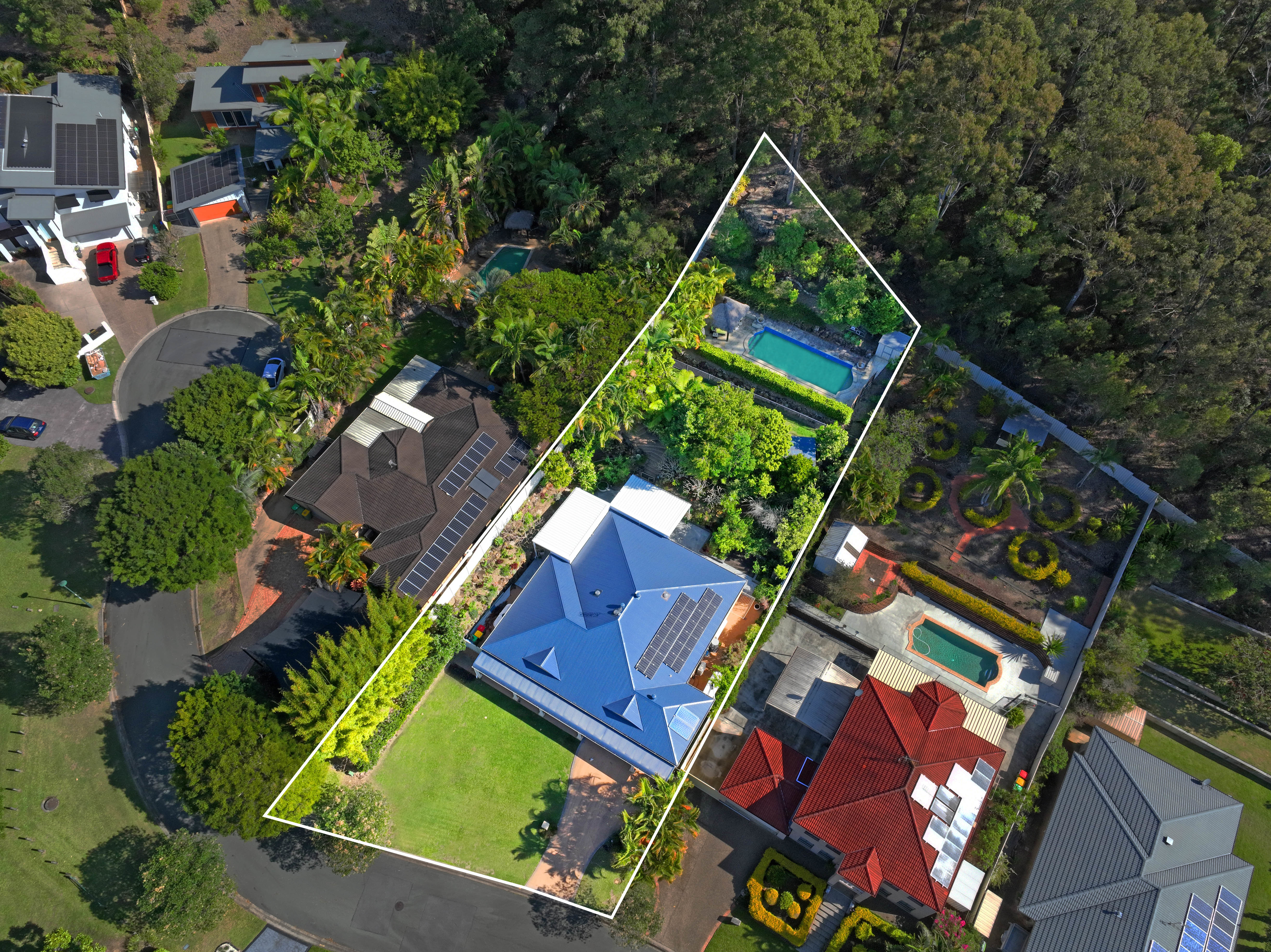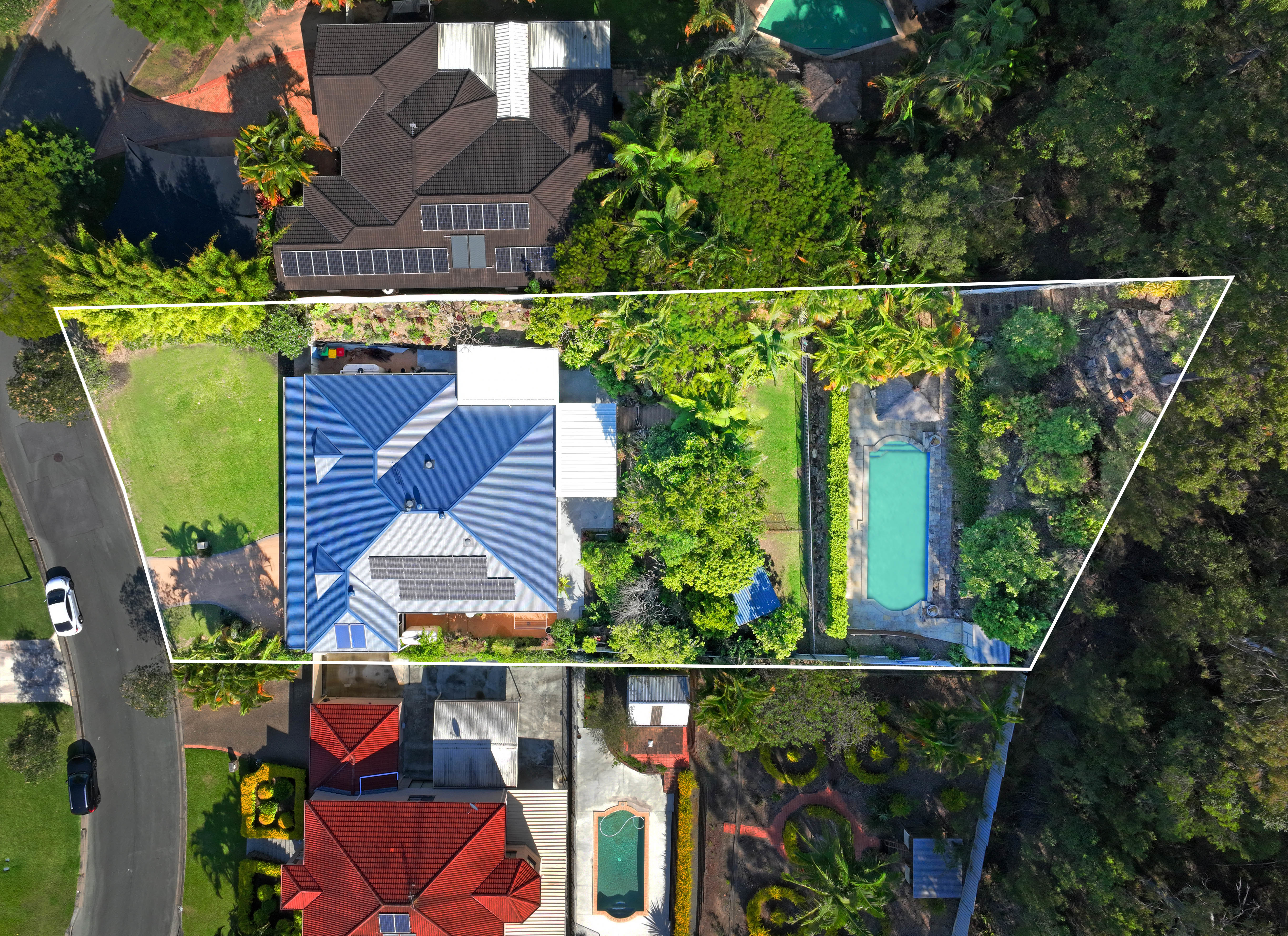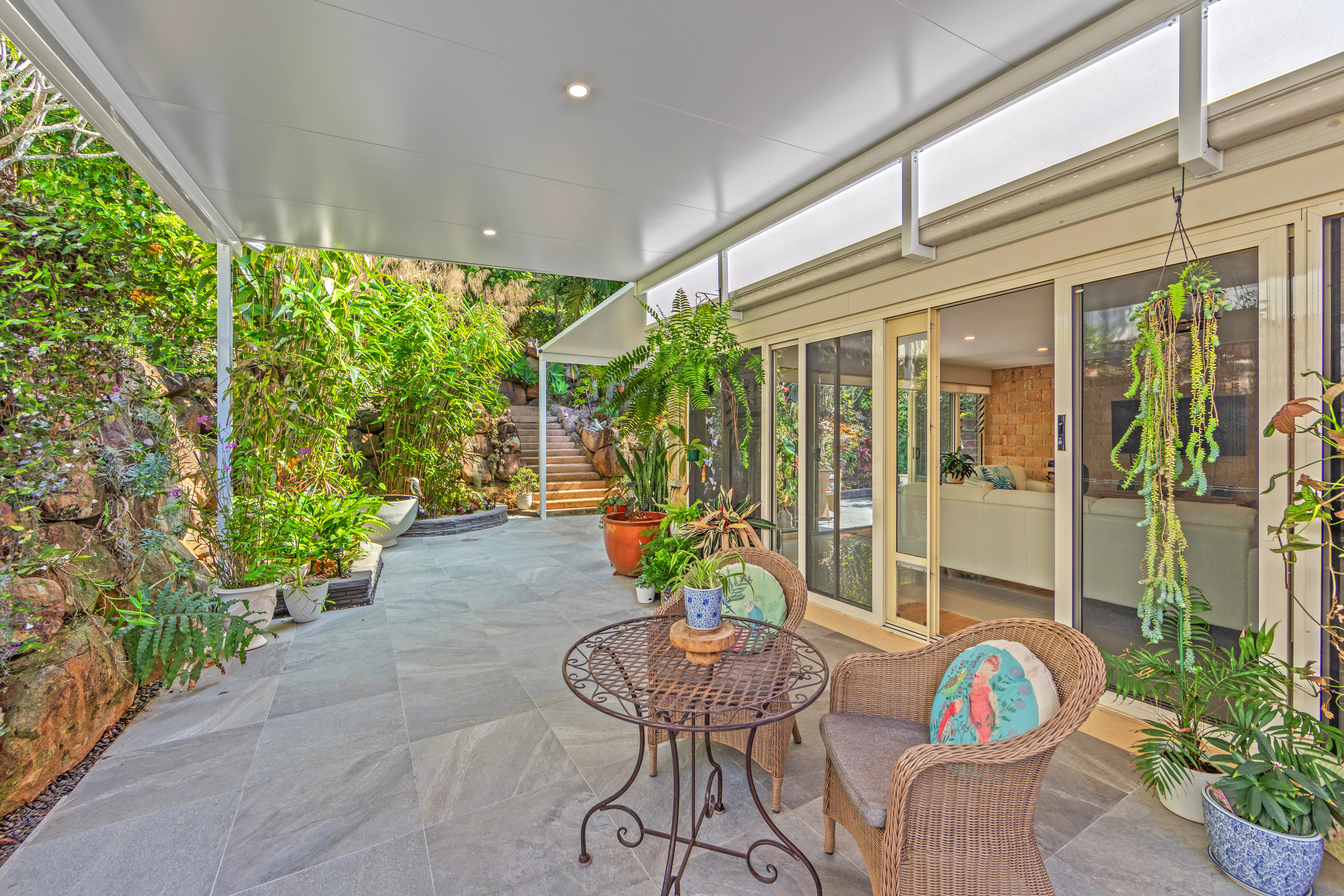 The Property. *Positioned in a peaceful cul-de-sac. *Crimsafe screens throughout. *Side gate access. *Three 4,000-litre water tanks. One of which is set up to irrigate the property gardens. *Fully fenced for privacy and security. *Gardens sheds for additional storage. *Chicken coop. *A deck provides a perfect spot to enjoy city views. *Equipped with a brand new 5.8 KW solar system. *Stairs lead to an elevated entertaining area by the concrete inground pool, surrounded by sandstone tiles, overlooking stunning city views. *Two outdoor entertaining areas with insulated sandwich panelling flyovers and integrated lighting create ideal alfresco dining and relaxation spaces. *Beautifully landscaped gardens complete this exceptional property.