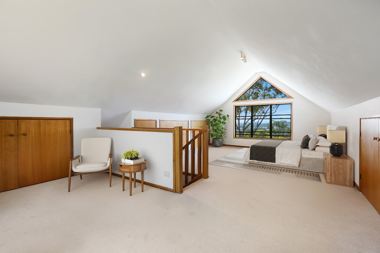 • Loft bedroom or work/craft space with lots of storage with ocean and rainforest views
